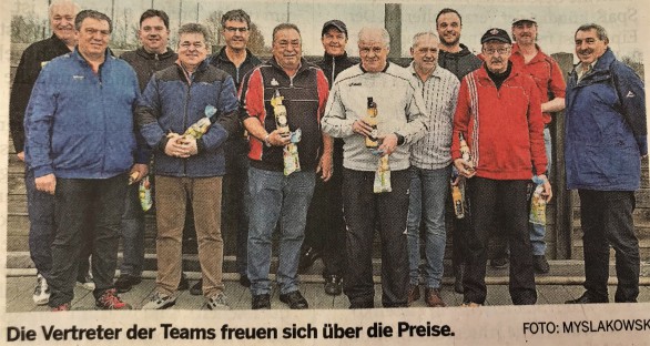 Am 15. April fand die Vorrunde Kreispokal Herren statt. Unsere zweite Mannschaft (Herren) starteten in der Gruppe E und haben das Turnier mit einem hervorragenden zweiten Platz absolviert. Wir gratulieren Gernot Dietz, Michael Altweck, Heinrich Fenzl und Ferdinand Watter zu einem Punktestand von 10:4 und einer Differenz von 28.