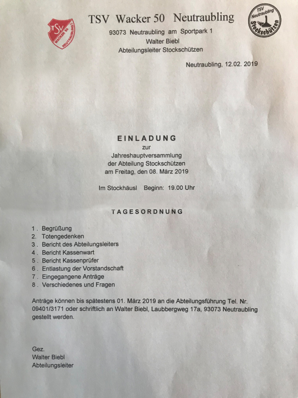Die Stockabteilung des TSV Wacker 50 e.V. ermittelte seine Vereinsmeister im Plattl-, Ziel- und Mannschaftsschießen. Zum Wettbewerb für die beiden Einzelturniere meldeten sich 24 Stockschützen und Stockschützinnen. Im Plattl- und Zielschießen der Herren gewann Günter Sattler mit 197 Punkten vor Walter Biebl mit 190 Punkten und Herbert Zankl mit 178 Punkten. Beim Wettbewerb der Damen gewann Rosa Frank mit172 Punkten vor Elisabeth Biebl mit 167 Punkten und Sonja Esposito mit 132 Punkten. Zum Mannschaftsschießen gingen 6 Teams an den Start. Den Titel des Vereinsmeisters holte sich das Team Biebl in der Besetzung Elisabeth Biebl, Günter Sattler, Walter Treixler, Reinhard Stobbe mit 8:2 Punkten und einer Stocknote von 1,523 vor dem Punktgleichen Team Zollner und den Schützen Sandra Zollner, Gernot Dietz, Luigi Tagliaferri, Ferdinand Watter mit 8:2 Punkten jedoch mit einer Stocknote von 1,305 vor dem Team Fenzl mit den Schützen Rosi Fenzl, Sepp Weigert, Richard Heller, Peter Ficht mit 4:6 Punkten und einer
