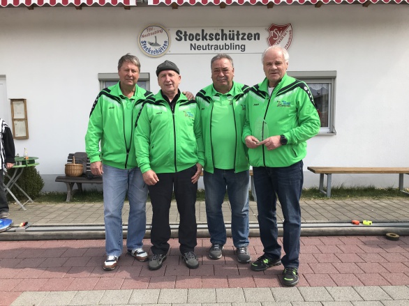 Wir gratulieren dem Herrenteam der Neutraublinger Stockschützen zum ersten Platz beim Osterhasenturnier am 31.03.2018 in Alteglofsheim. Mit 18:2 Punkten lagen sie vor den Stockschützen Hagelstadt (16:4) und der Mannschaft Feuerwehr Gebelkofen (14:6).