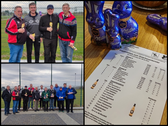 Super Auftakt für unsern Herren beim Osterhasenturnier am 08.April 2023 Mit einer hervorragenden Leistung von 11:01 Punkten wurde das Team Neutraubling in der Gruppe A Erster. Beim Platzierungsspiel mussten sie eine Niederlage gegen die Gloreichen 4 hinnehmen wurden dann aber in der Gesamtwertung Zweiter. Wir gratulieren Walter Biebl, Horst Weinhut, Gernot Dietz und Ferdinand Watter zu der super Leistung und wünschen für die weitere Sommersaison viel Erfolg